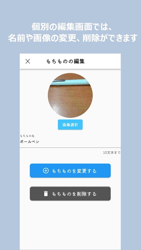 ・編集画面で画像の変更や名前の変更、削除が可能。