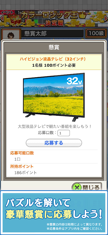 さらに、パズルを解いて獲得したポイントを使えば、最新家電などが当たる豪華懸賞にも応募できちゃいます!