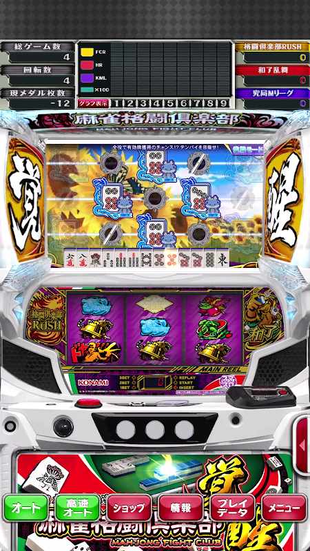 本アプリは「パチスロ 麻雀格闘倶楽部 覚醒」のシミュレータアプリです。 遊技制限なく、オートプレイ・高速オートプレイ・ウェイトカットの機能が無料で使用できます。