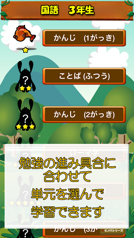 小学校3年生の国語アプリの決定版!小学校での学習の進み具合に合わせて単元を選択し、手軽に、効果的に復習することができます。サクサクと4択で問題を解いていくことができます。