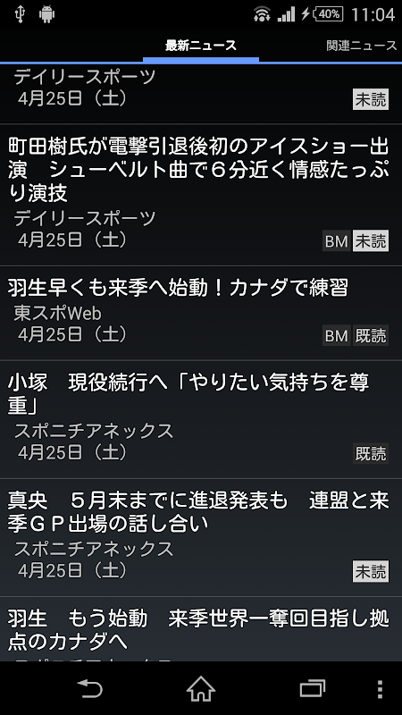 「最新ニュース」と「関連ニュース」と「リンク集」がタブ別に表示されます。スワイプすることで切り替えできます。