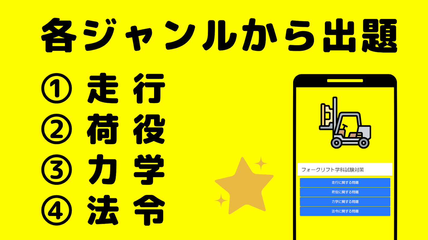合格者が教えるフォークリフト運転免許資格の学科問題対策アプリです。
