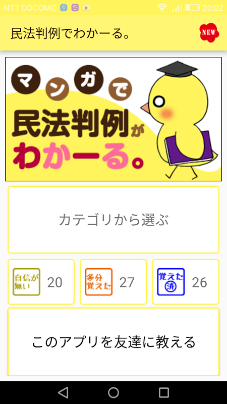 このアプリでは民法判例百選の収録判例を中心に、判例をマンガで分かりやすく紹介します。現在(2018/3)の収録数は154判例で、今後も新しい判例が追加予定となっています。