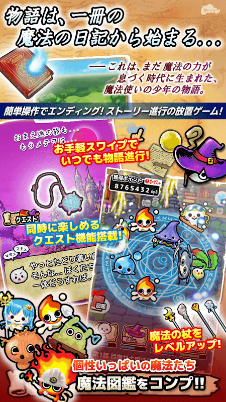 魔法を集めながら、物語を進めて楽しむ放置タイプのゲームです。