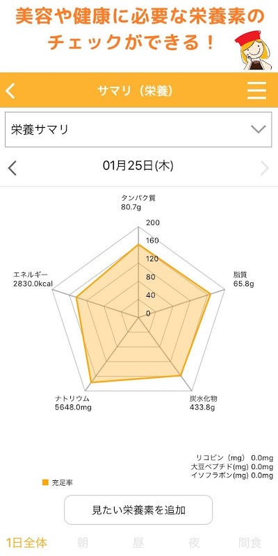 ユーザーの気になる栄養素で確認できる栄養グラフ