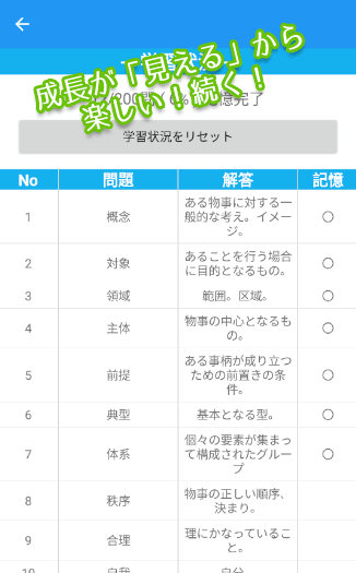最適な覚え方で現代文重要単語・重要語句の暗記ができるアプリです。