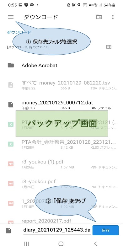 月をまたいで、日記を参照する場合は、「」ボタンをタップします。