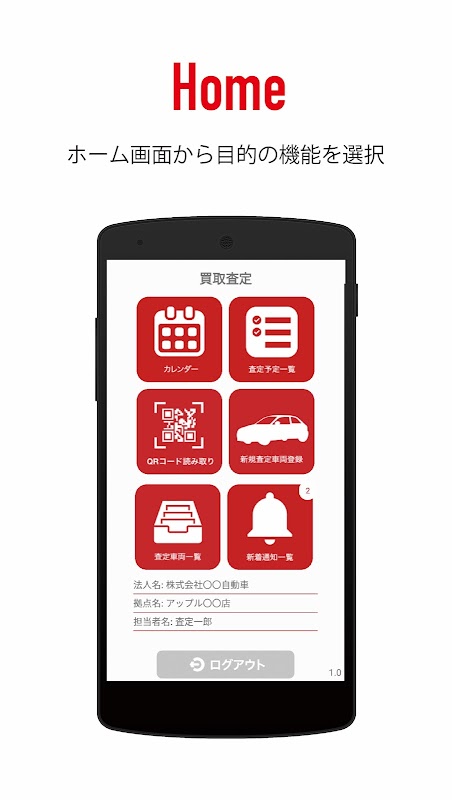 自動車販売店専用のアプリとなります。※一般の方はご利用いただけません。