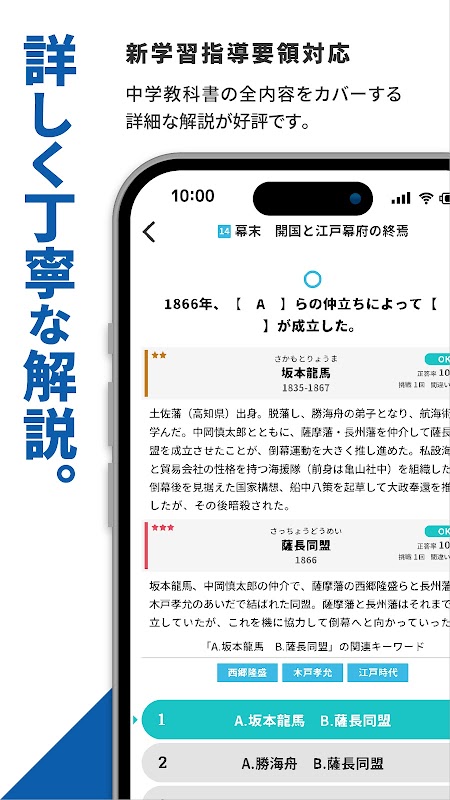 中学社会の歴史を完璧にしよう。LYNXは日本一解説がわかりやすく、学習しやすいアプリを目指して開発された、高機能・親切設計のアプリです。定期テストや受験に最適!