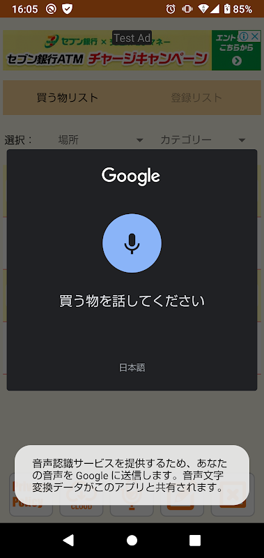 音声登録 : 音声で入力して買い物アイテムを登録できます。