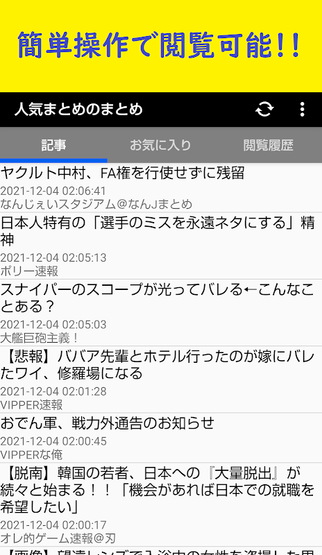 簡単操作で気になる話題の記事を手軽に閲覧可能です。