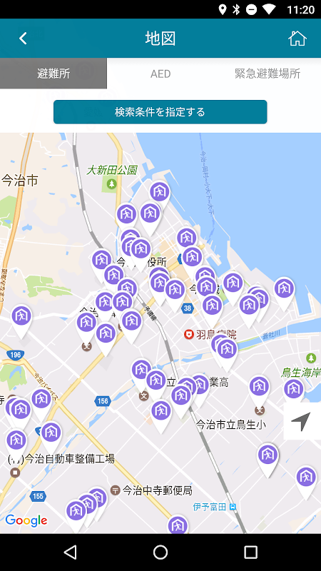 愛媛県今治市における自然災害の有事に備えて、あらかじめ避難所やハザードマップを確認できるよう、防災意識を向上していただくための防災ガイドアプリです。