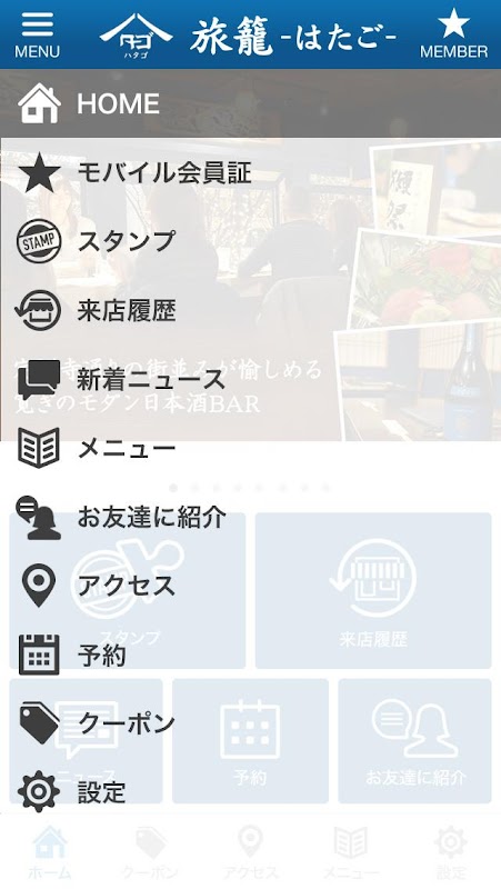 仙台市の日本酒バー旅籠公式アプリの旧バージョン