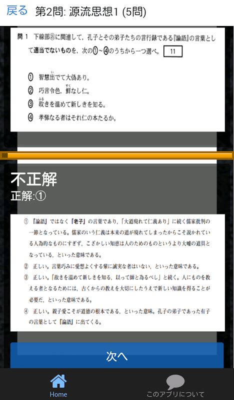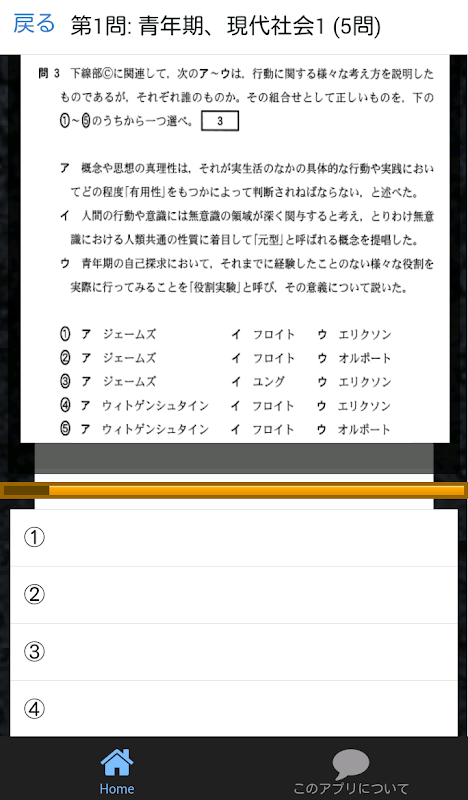 ※ 実際の問題では選択肢が9択まであるものもありますが、アプリのシステム環境の都合上、問題の選択肢は最大で5択までとなっております。