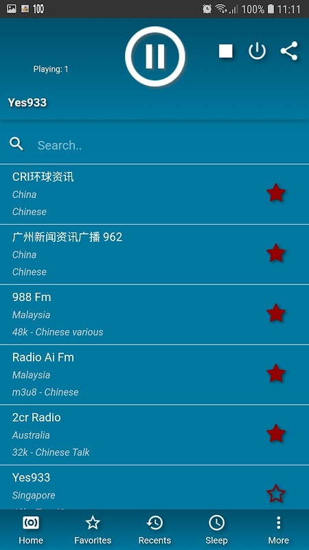 最近のリストでオンラインラジオを表示します。