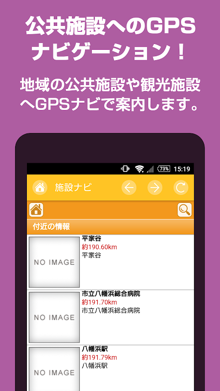 地域の公共施設などへのナビゲーションができます。