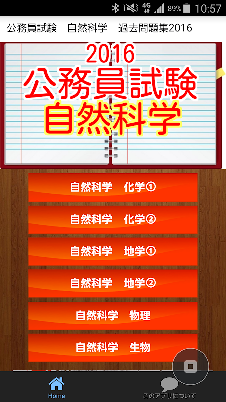 このアプリは公務員試験の自然科学で出題される地学・生物・化学・物理など問題をランダムに作成した非公式の無料学習アプリです。問題は高卒レベルの問題です。