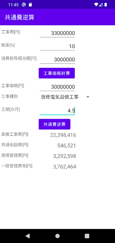 公共工事の工事価格と工期から、直接工事費及び共通費を逆算します。