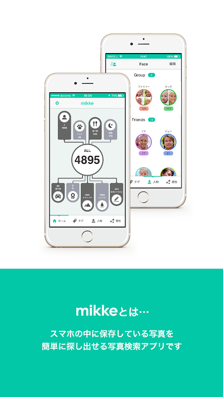 写真検索アプリ「写真をmikke」は、スマホに保存されている写真を解析し、その結果を元に「人物」や「撮影時のシチュエーション」等、多彩な条件でタグ付けすることで、とっておきの写真を楽しく簡単に見つけ出すお手伝いをする、そんな新しいコンセプトのスマートフォンアプリです。