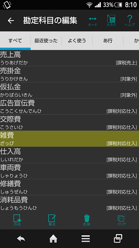 ・勘定科目の選択時のセレクタボタンで、「あ」~「わ」の絞り込みボタンでローマ字記述のサーチキーも絞り込み対象になるように変更しました。