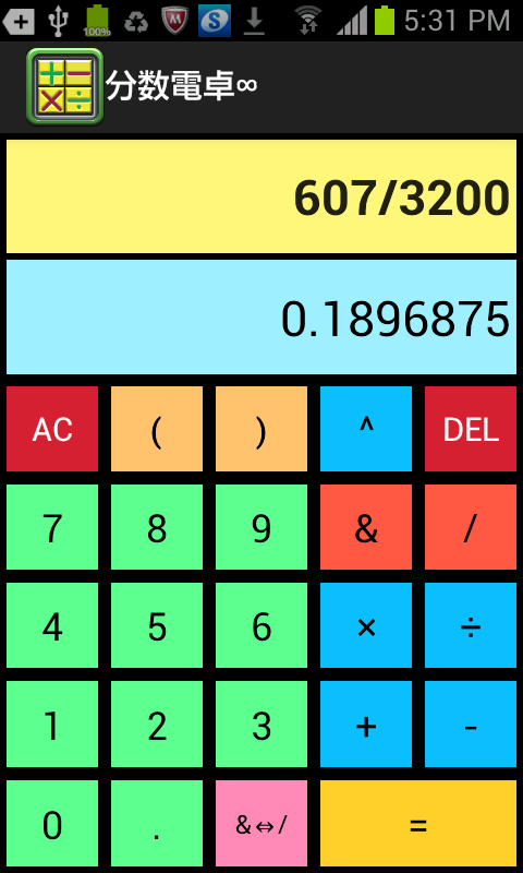 整数、分数、小数、指数の四則混合計算や括弧付き計算が出来る分数計算機です。