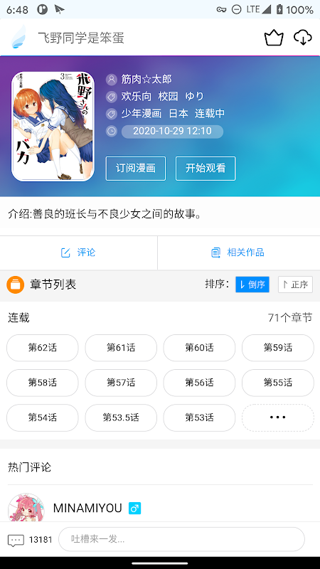 ダークモードをサポートする、アニメーションハウスのホームページに基づくサードパーティのコミック読書アプリ