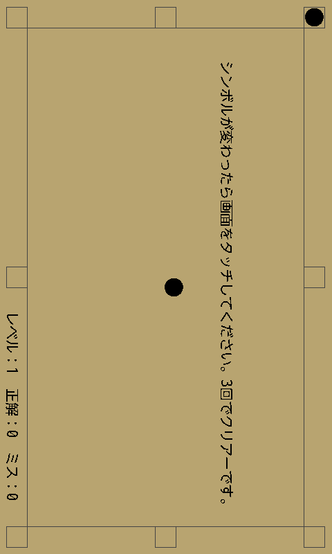 シンボルが変わったら画面をクリックしてください。3回正解でクリア。5回失敗でゲームオーバーです。