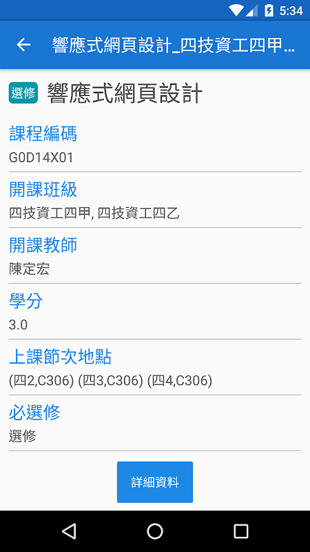 2.我的課表功能-日夜間部課程一目了然,點選可查看詳細資訊