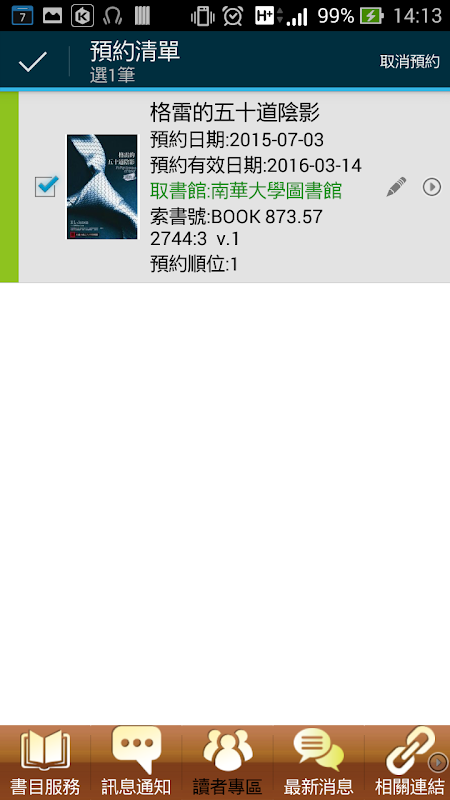 アクション南華大学図書館は、学校のスタッフがスマートフォンを使用して、ライブラリ関連情報への迅速なアクセスを学生に提供しています。クエリのコレクション、メッセージ通知などを含め、単に口座番号やパスワード、個人情報へのアクセスを入力し、そのように借ります。