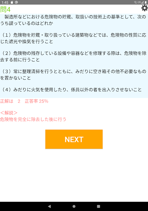 本アプリ「危険物丙種問題集」は無料です。無料で全ての機能、全ての問題をご利用頂けます。