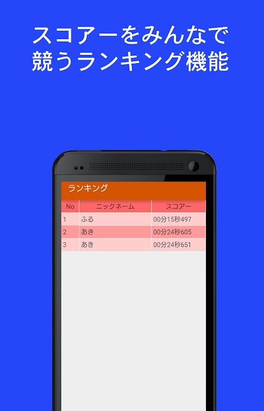 ・反射神経スコアーランキング機能。みんなで、タイムを競ってランキング入りを目指そう。