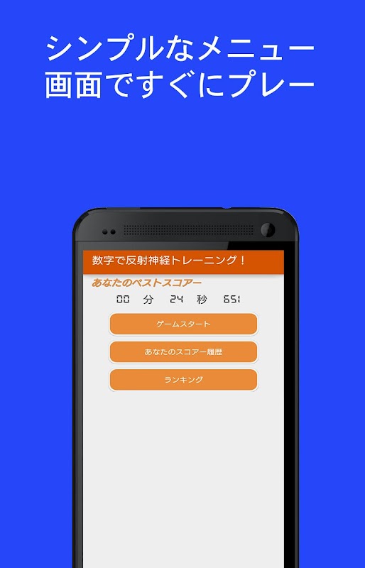 反射神経を鍛えるためには、正確性が求められるます。「数字で反射神経トレーニング」では、シンプルに1~25までの数字がランダムに振られたボタンを1から順番にタップしていき、終了時間を測定しいかに短くゲームをクリアするかというアプリです。もし、間違った数字を押してもゲーム終了にはならずに正しく次の数字がタップされるまで、ゲームは続行します。正確性と反射神経を鍛えるには絶好のアプリです!また友人や家族でスコアーを競いあって楽しむことができます。