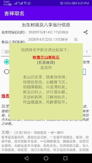 *総合的な名前診断: 三才と五格の詳細な説明、生年月日、星座の解釈、好きとタブーのヒントを含みます。