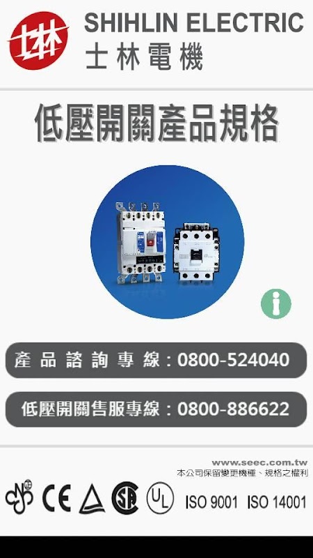 士林電機電磁開關、低壓開關選用尺是一款可以快速選定士林電機電磁接觸器及無熔絲斷路器的工具軟體。