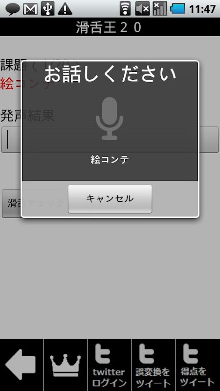 ・twitter に発声結果の誤変換やじぶんの得点をツイートできます