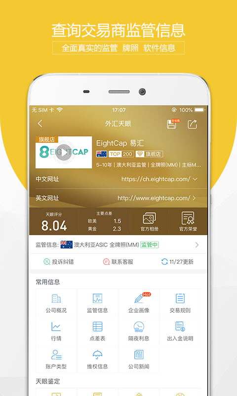 外汇天眼极简版,一站式的外汇监管查询平台。