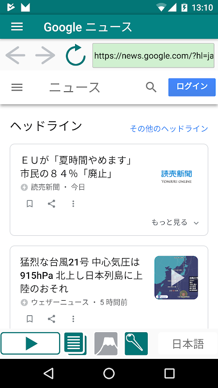 ・コンテンツによって、うまく文書データが取れない場合があります。このような状態になるサイトでは、対象サイトをブックマークし、ブックマーク設定で言語判定モードを「自動」から手動設定にするか、ページロード後に言語表示部分をタップして、手動で言語を切り替えてみてください。