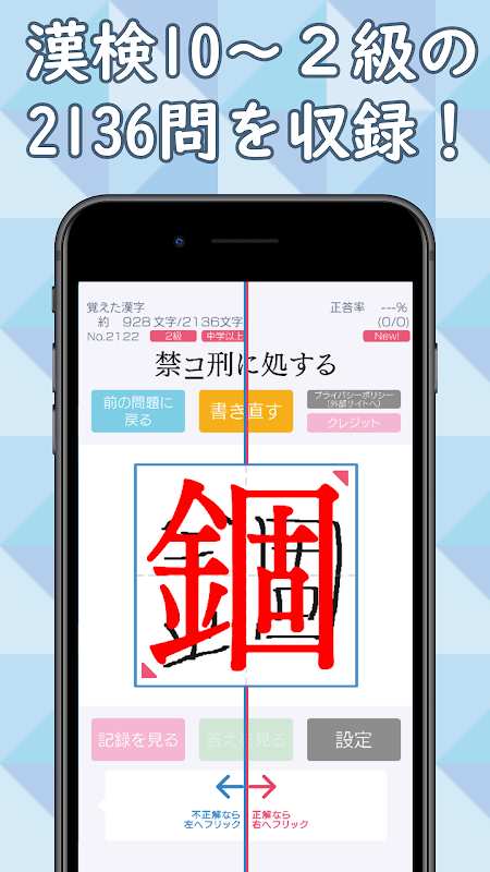 ・漢検10級〜2級対応(小学1年〜高校卒業レベル)全2136字収録。常用漢字完全網羅
