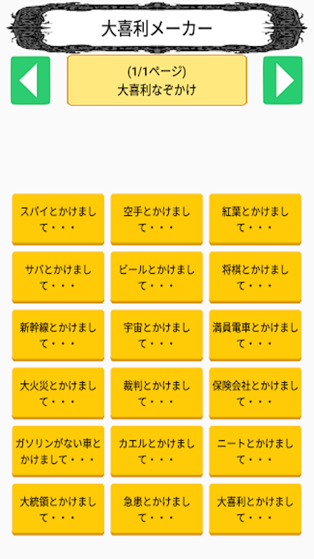 このアプリは大喜利アプリです。その中の1つである「なぞかけ」とは、〇〇とかけまして〇〇と解きます、その心は・・・という遊びです。