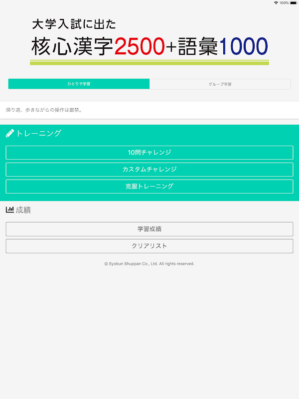 本誌掲載の漢字2500と語彙1000を、三つのモードで効率よく学習できます。