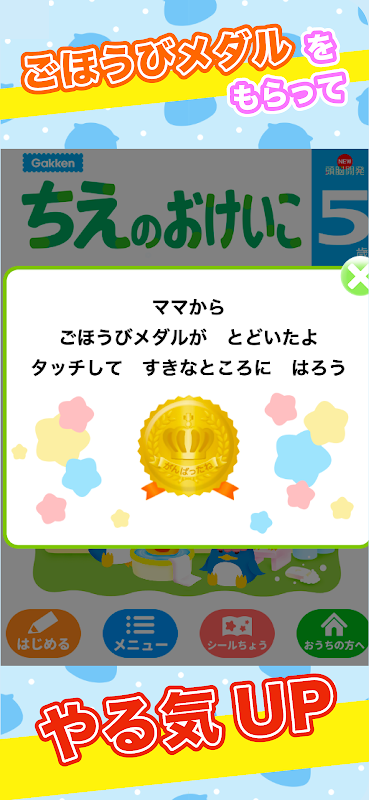 また、がんばっているお子さんに「ごほうびメダル」をプレゼントすることができます。