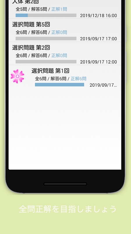 ・復習/自習では未解答問題、不正解問題、正解済み問題、付箋をつけた問題のみを選択でき、何度でも問題を解くことができます