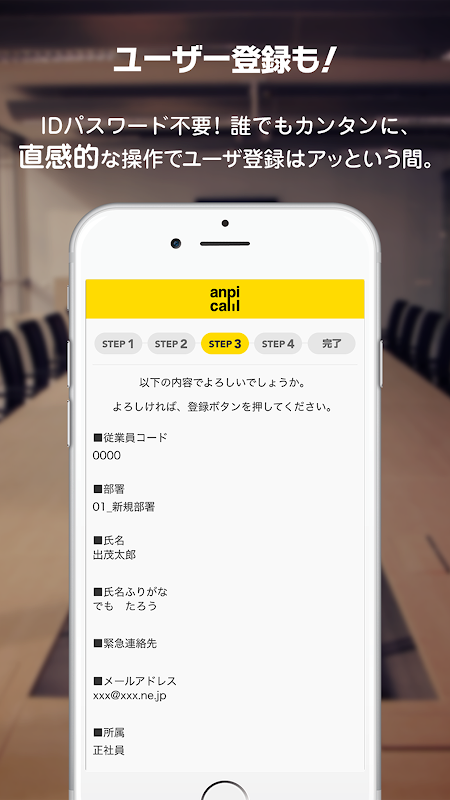 ・パスワードも不要で、「安否コール」に未登録のユーザでも専用のQRコードから新規登録できます。
