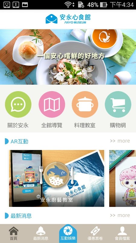 歡迎使用安永心食館APP,帶你進入科技互動的趣味世界! 獨創AR集寶遊戲,讓你開心遨遊,還有機會拿好康! 線上廚藝教室帶你煮出一道道美味料理。還有更多好玩的趣味互動,快下載APP盡情體驗。