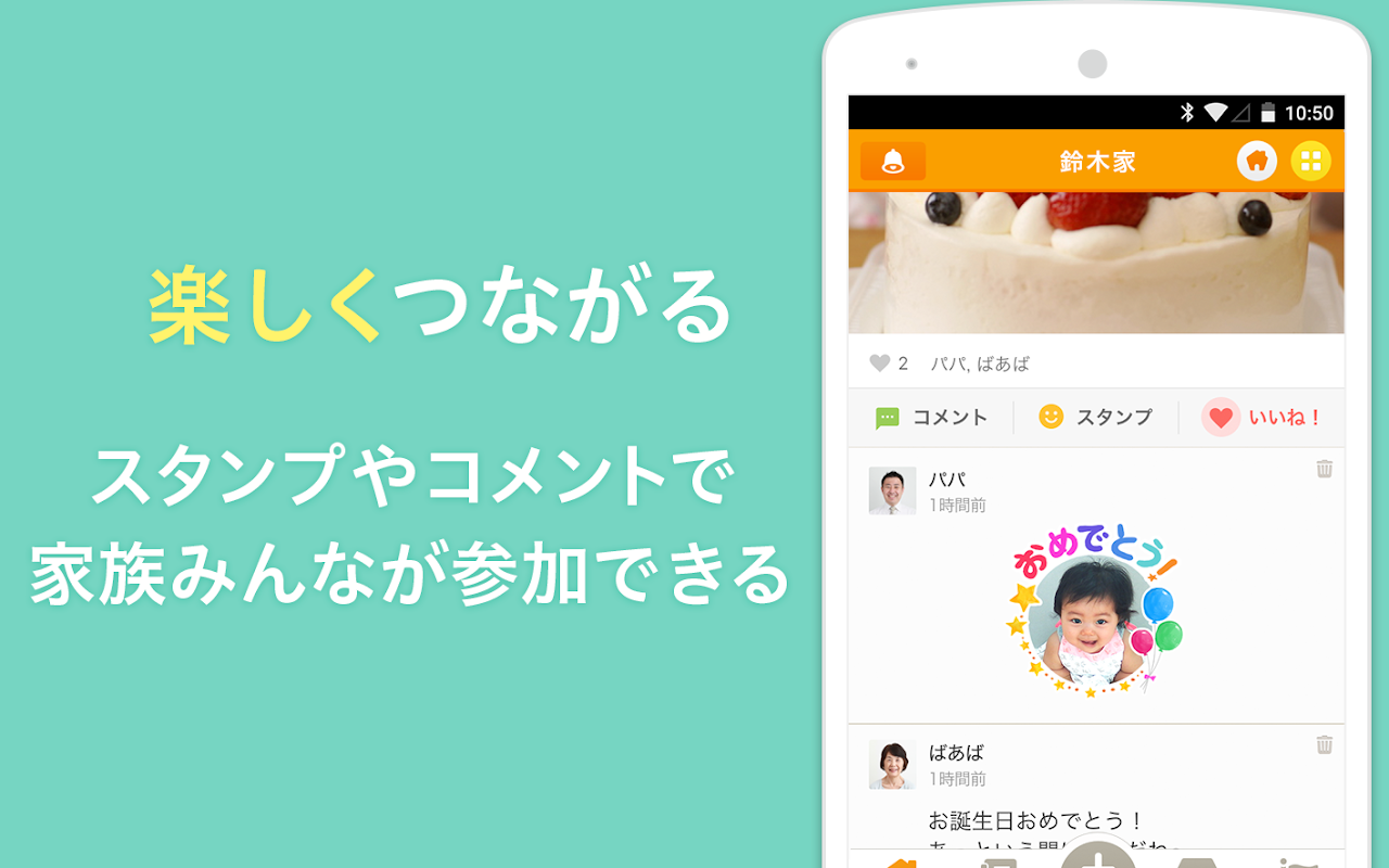 写真や動画を無料・容量無制限で残せる”家族の思い出アルバム”アプリです。 我が子のオリジナルスタンプも無料作成!フォトカレンダーも簡単作成!