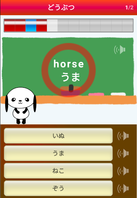 かわいいキャラクター(パンピー)と会話しながら楽しく学べます。