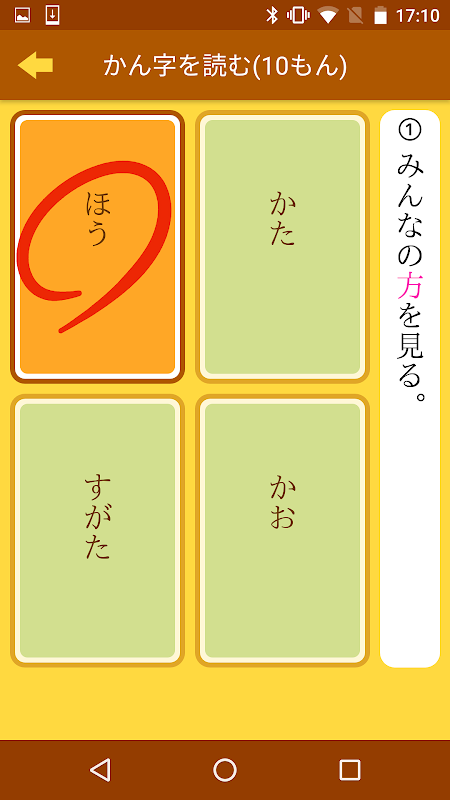 ・「かん字を読む」では4つの候補の中から正解を選択して下さい。