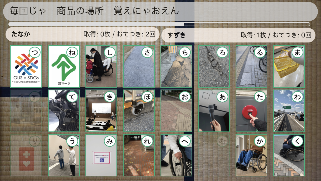 それは岡山市内に潜むバリアや、障がいのある方々が日常で感じる不便さなどを、かるたを通して理解するためのスマホゲームです。