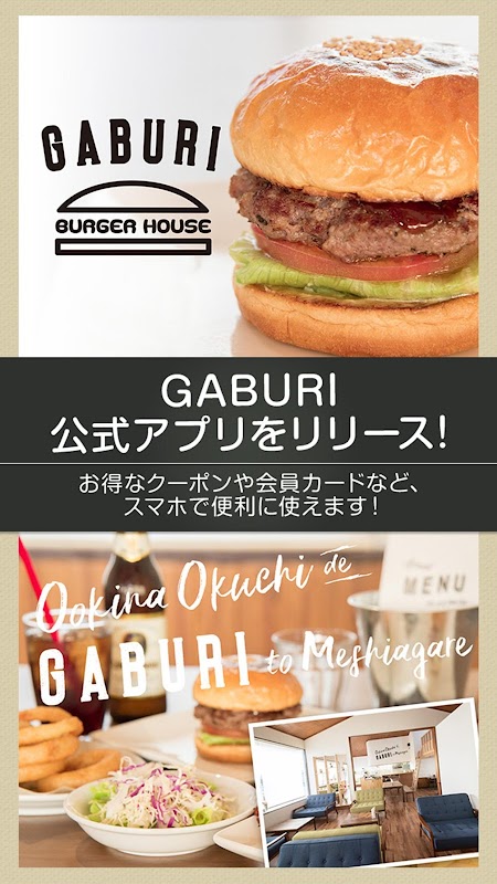 岡崎市のバーガーハウスGABURIの公式アプリ!