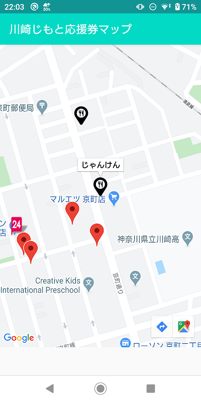 川崎市じもと応援券マップです。 川崎市じもと応援券の使用可能なお店を、地図から探すことが可能です。